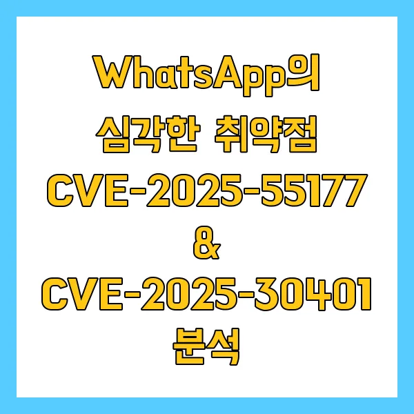 2025년, WhatsApp에서 발견된 두 가지 치명적인 취약점 CVE-2025-55177과 CVE-2025-30401은 전 세계 수십억 명의 사용자에게 심각한 보안 위협을 야기할 수 있었습니다. 이번 포스팅에서는 각 취약점의 기술적 세부 사항과 잠재적 영향, 그리고 대응 방안에 대해 심층적으로 분석합니다.