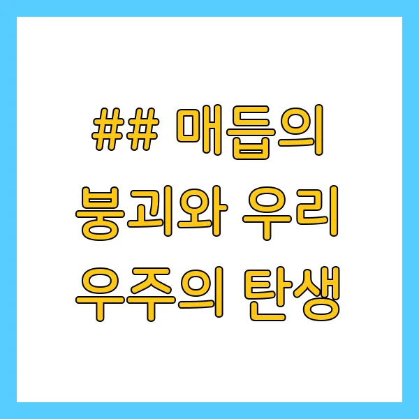 우리는 왜 존재하는가? 이 질문은 인류가 밤하늘을 올려다본 이래로 품어온 가장 근원적인 질문일 것입니다. 현대 물리학은 빅뱅 이론을 통해 우주의 시작을 설명하지만, 여전히 풀리지 않는 거대한 미스터리를 남겼습니다. 바로 '물질-반물질 비대칭' 문제입니다. 빅뱅이 일어났을 때, 물질과 반물질은 정확히 같은 양으로 생성되었어야 합니다. 그렇다면 이들은 서로 만나 쌍소멸하며 빛(복사 에너지)만을 남긴 텅 빈 우주가 되어야 마땅합니다. 하지만 우리가 아는 우주는 별, 은하, 그리고 생명으로 가득 찬 물질의 세계입니다.